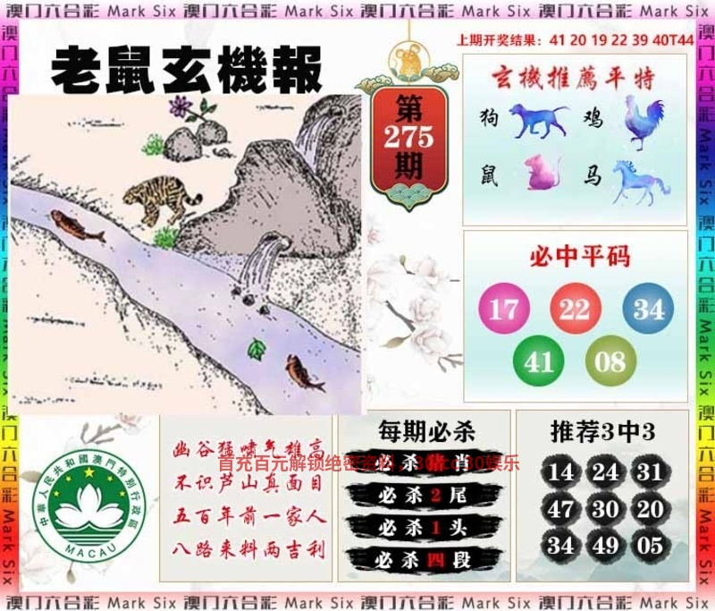 275期四肖 | 鸡狗猴蛇 | 开:鸡45 |