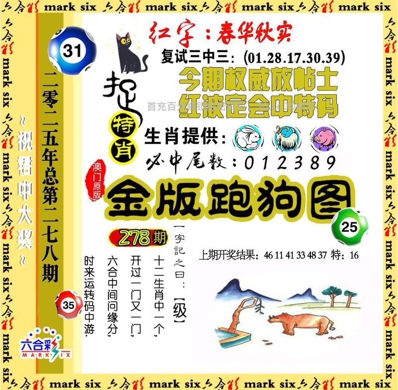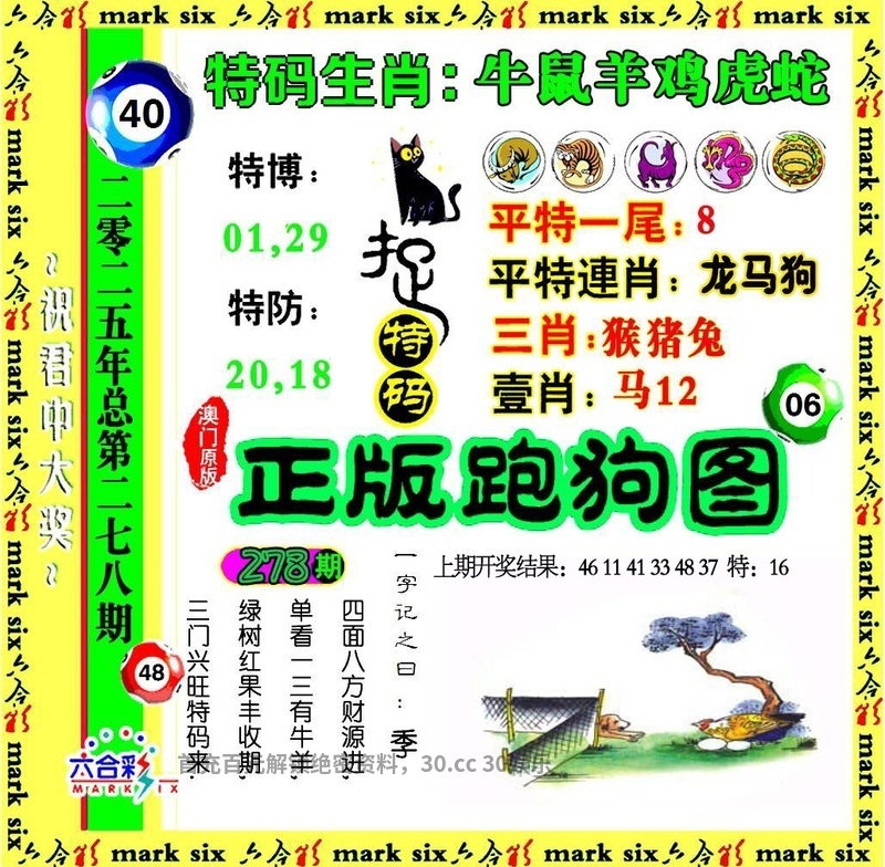 278期九肖 | 龙马鸡猴鼠蛇狗虎牛 | 开:虎28 |